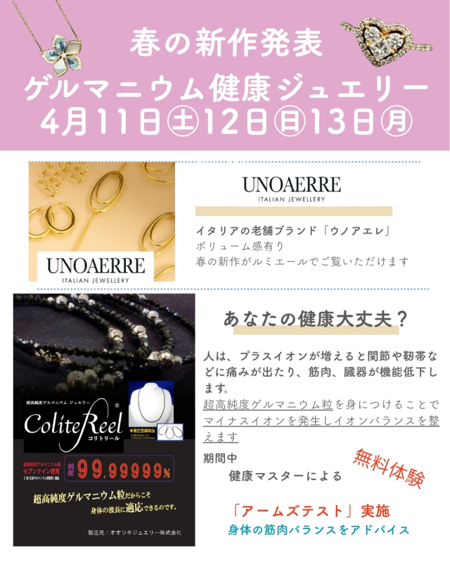 春の新作発表!ゲルマニウム健康ジュエリー